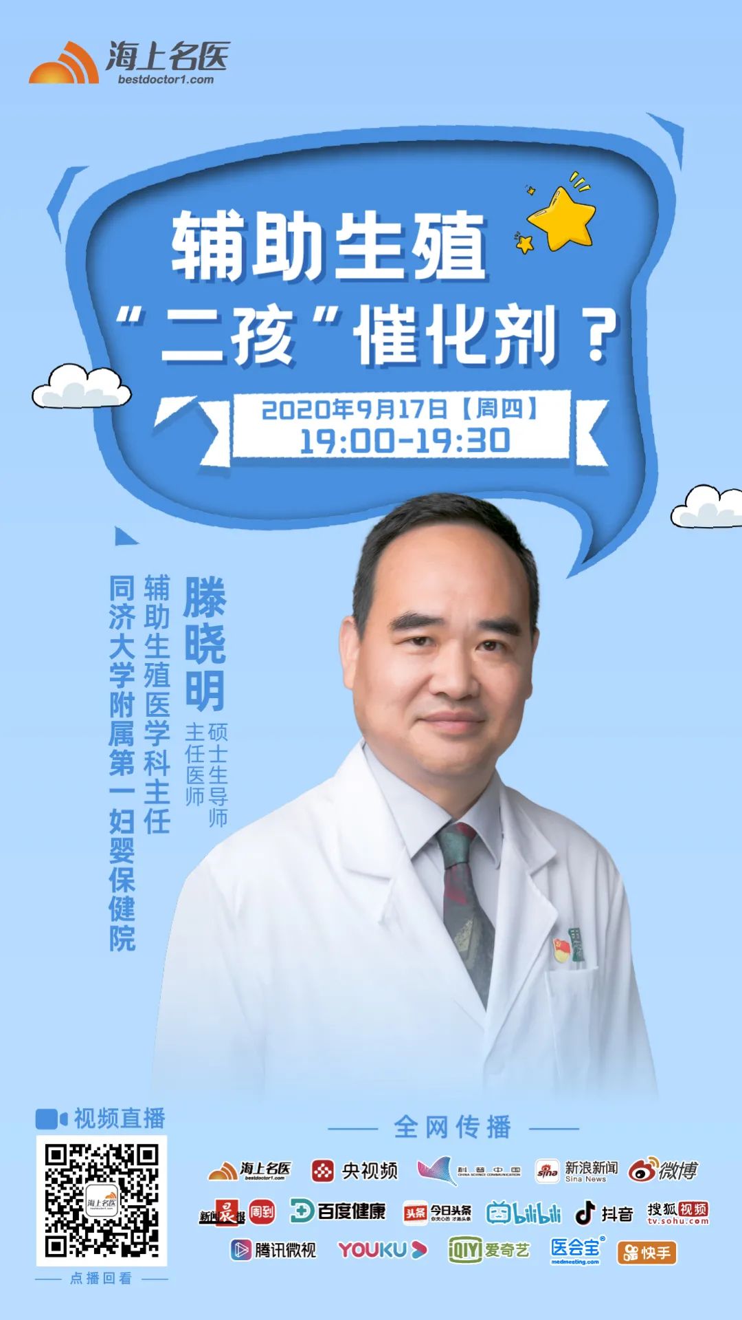 2020年9月17日(周四)晚7:00,同济大学附属第一妇婴保健院辅助生殖医学科主任滕晓明主任医师做客上海报业集团旗下“海上名医”,带来《辅助生殖:“二孩”催化剂?》视频直播。与您一同走进辅助生殖的神秘世界。