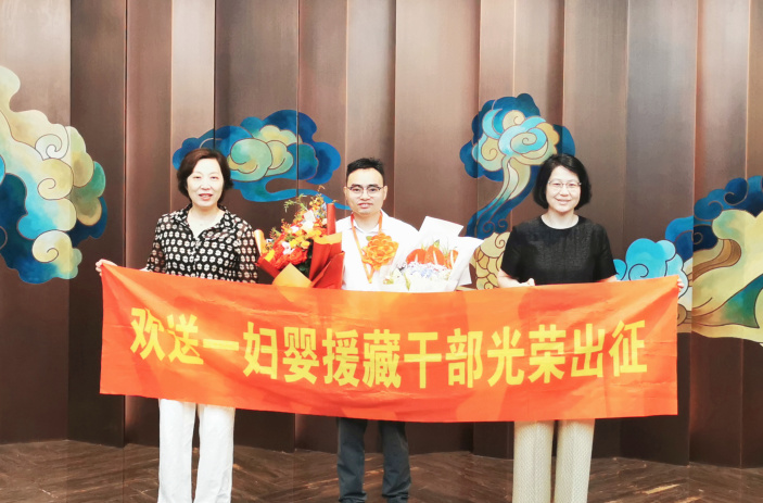 2025年7月17日,上海市第十一批援藏干部人才、一妇婴产科医生唐宇平同志带着医院党政领导的重托和全院职工的期望踏上援藏征程,前往西藏日喀则市人民医院,接力开展为期一年的医疗援建任务。医院党委副书记周倩赴浦东机场送行。