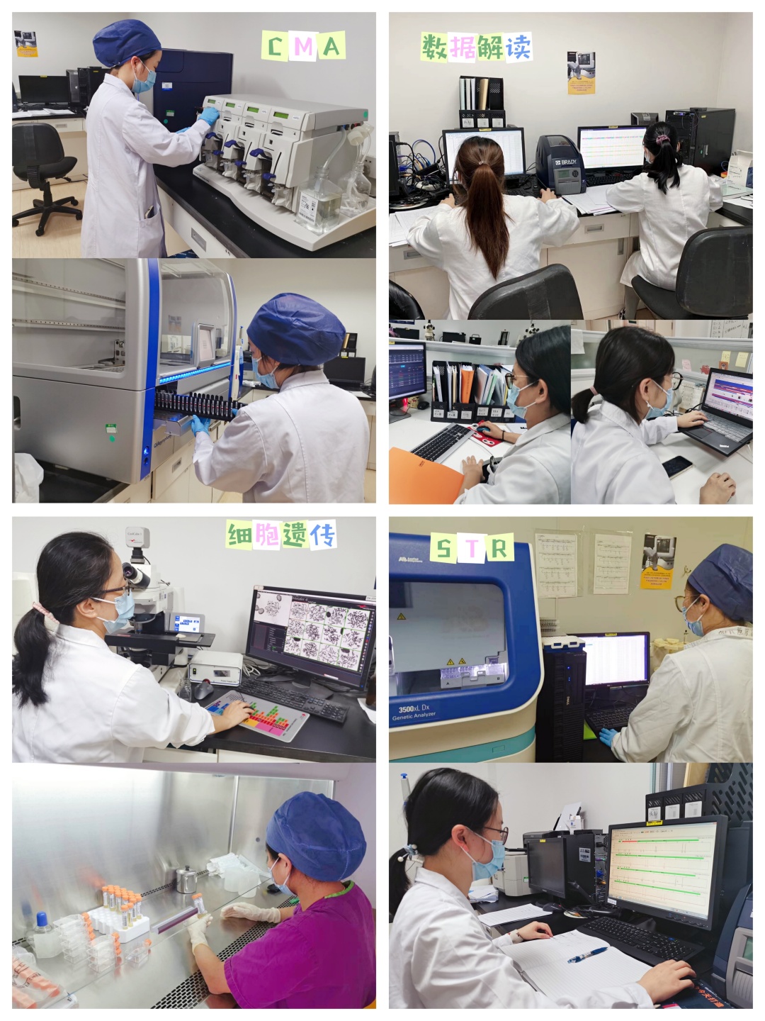 与临床部门始终保持进出有序的就诊人流不同,实验室团队几乎不接触患者,是科室的“后方阵营”,他们的工作看似单调普通,却不可或缺。疫情期间,多名技术人员被封控在家。为了保障科室业务的正常开展,关键时刻,分子遗传组中几位年轻成员积极响应,提出主动加入门诊闭环管理,24小时坚守在实验室,按时完成相关的检测,确保实验室的正常运转。她们的平均年龄只有30岁,疫情当前,她们主动放弃了和家人团聚的机会,选择坚守在自己的岗位上。在实验室团队的全力支持下,胎儿医学部绝大部分的实验室检测项目都能有条不紊的开展。细胞组的所有产前核型报告均在常规报告周期中按时发放;唐氏筛查、无创NIPT、染色体微阵列检测等遗传服务项目均正常运转。为了给封控在家的孕妇解答咨询相关检测结果,遗传咨询医生通过互联网医院开设了相关服务,为孕妈妈们答疑解惑,既解决了燃眉之急,也缓解了她们疫情期间的焦虑情绪。