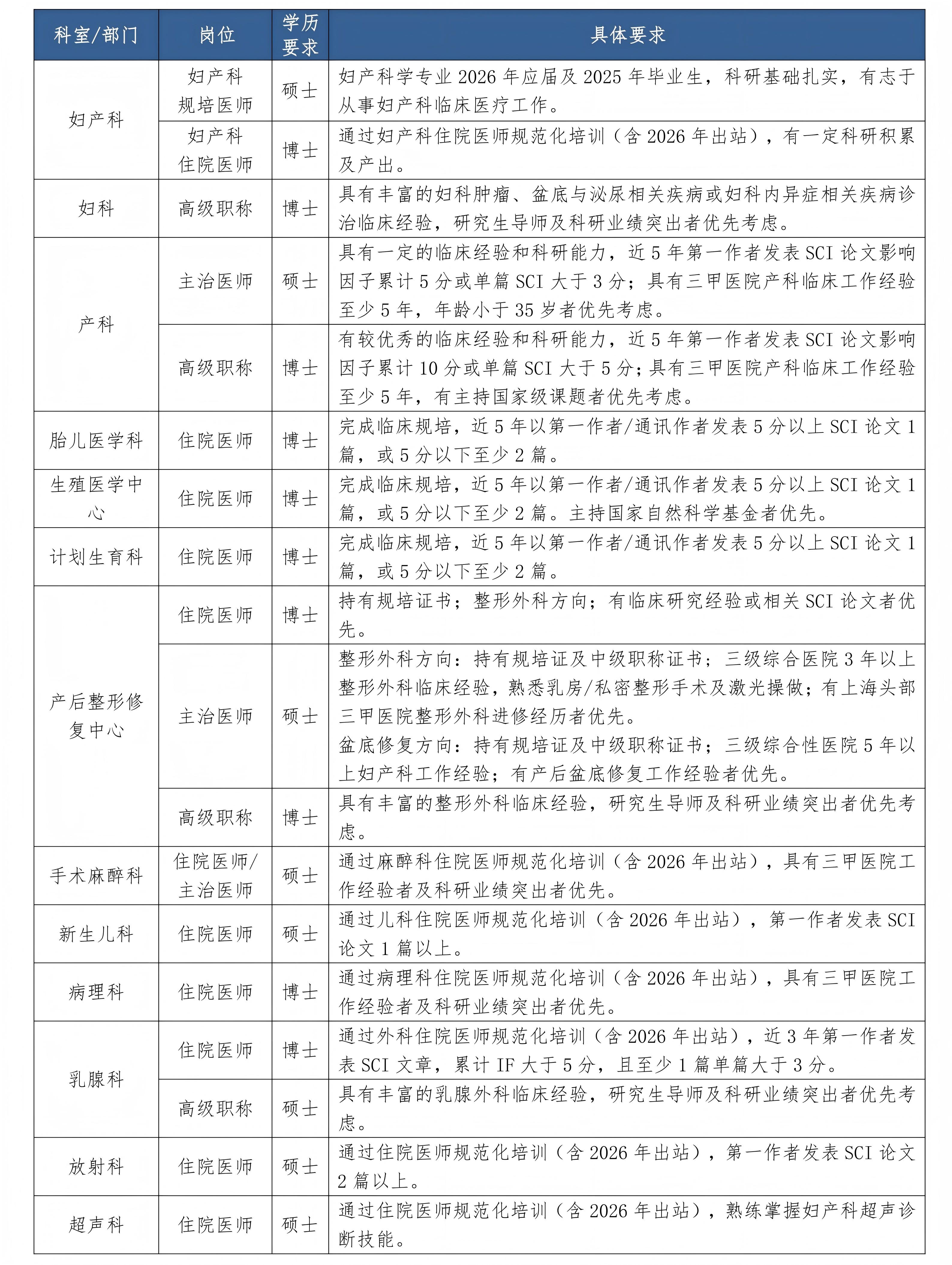 上海市第一妇婴保健院诚挚欢迎海内外英才加盟,携手奋进、共创辉煌!