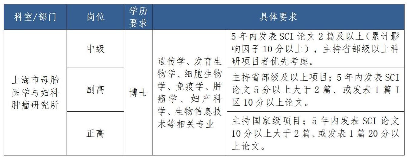 上海市母胎医学与妇科肿瘤研究所招聘启事