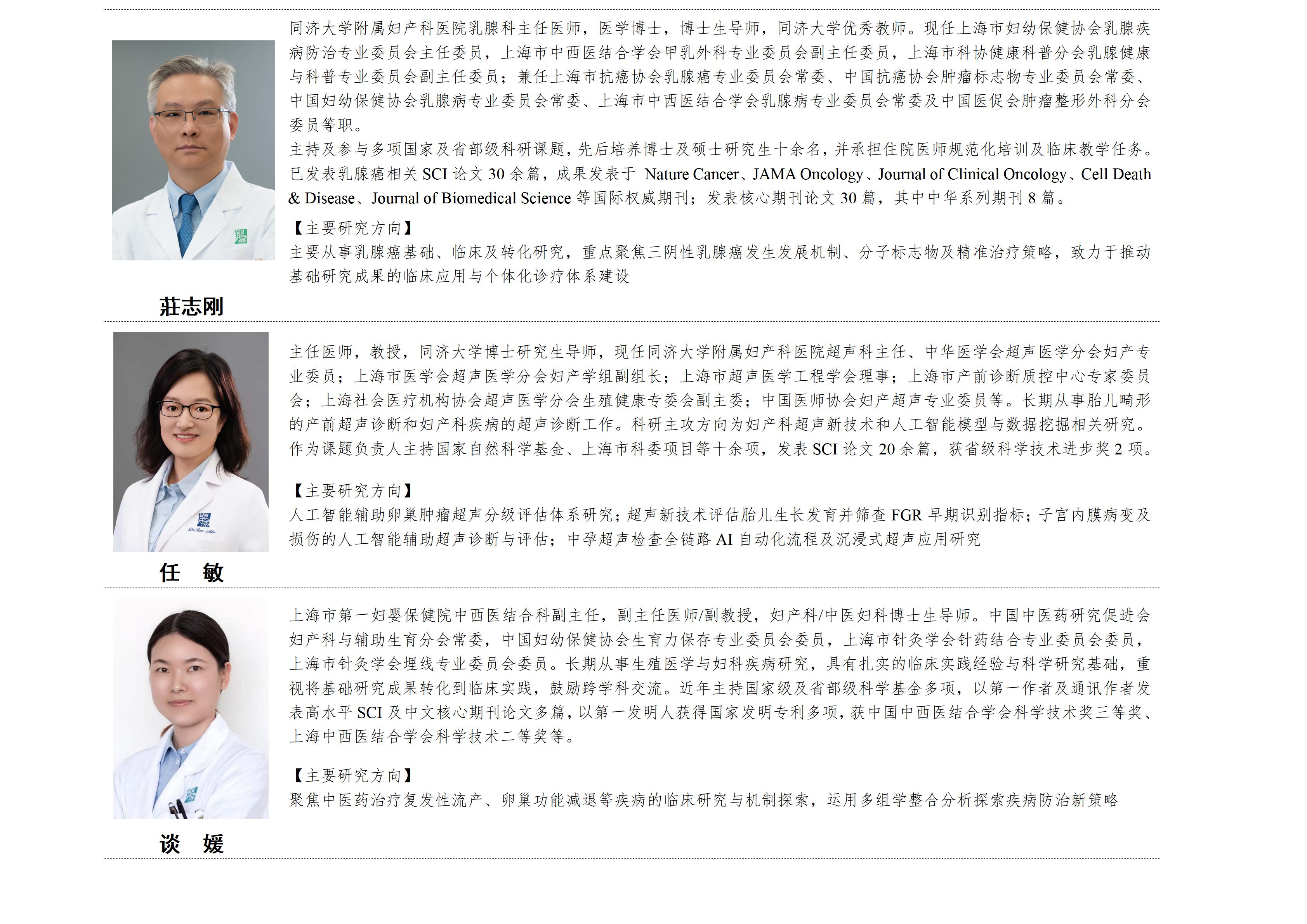 | 生殖医学 | 周倩 | 复发性流产基础与临床研究;生殖衰老的基础研究;子宫内膜损伤修复和生物材料的基础研究与临床转化研究 | shzhouqian@126.com |